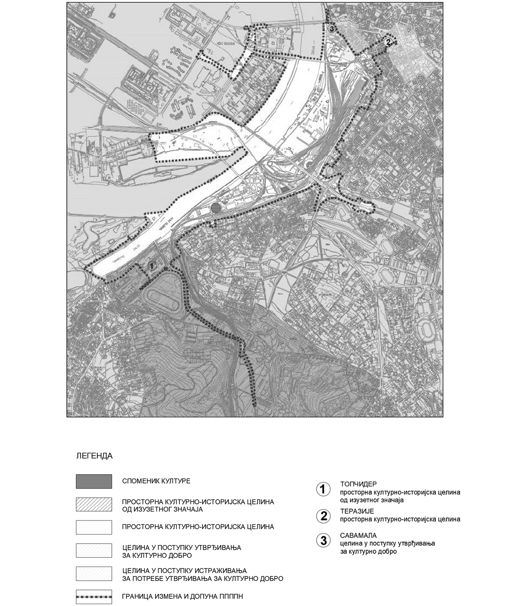 2) подручје на левој обали реке Саве, између Моста на Aди, Владимира Поповића до Булевара Михајла Пупина, Старог савског моста, и планираног продужетка Булевара Зорана Ђинђића до улице Милентија Поповића (градска општина Нови Београд).