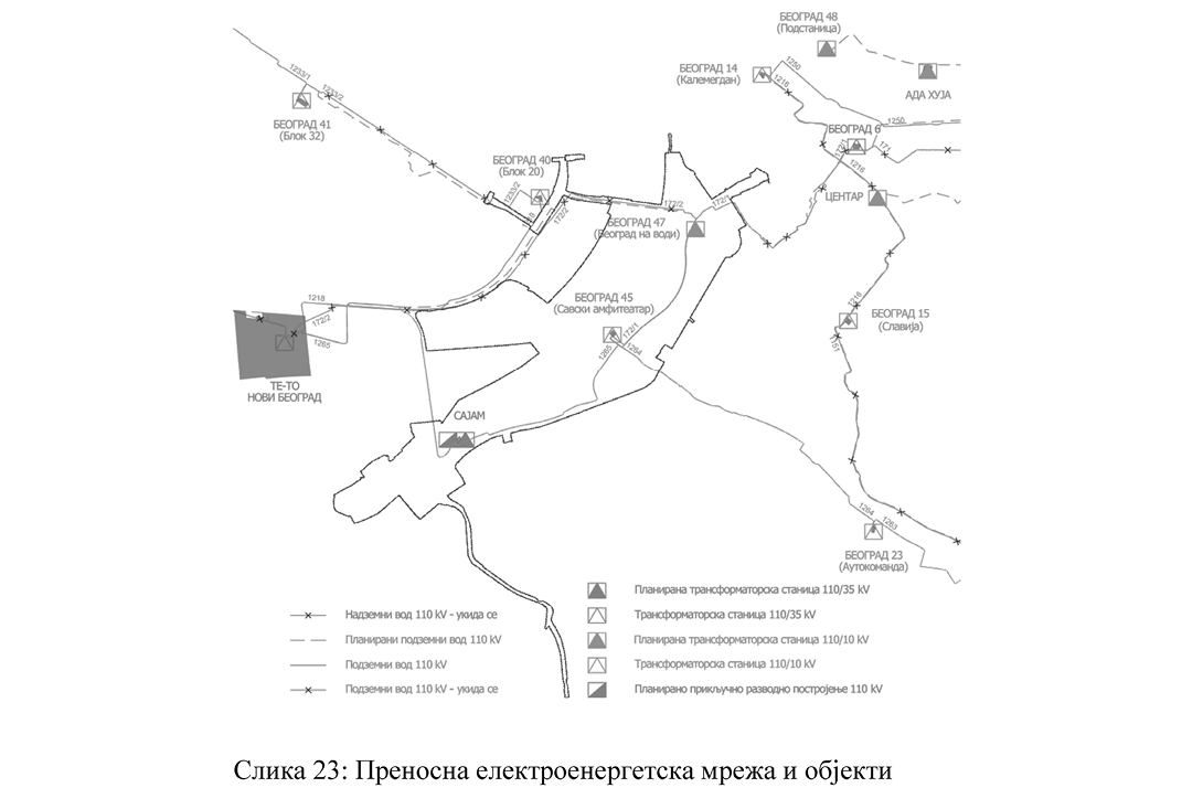 „– изградња трансформаторске трафо станице ТС 110/10kV „Београд на водиˮ у блоку 11д 14 и њено прикључење на подземне кабловске водове 110kV бр. 172/1 и бр. 172/2 постојећи 110kV кабл ТС 6 – ТО Нови Београд; иˮ.
